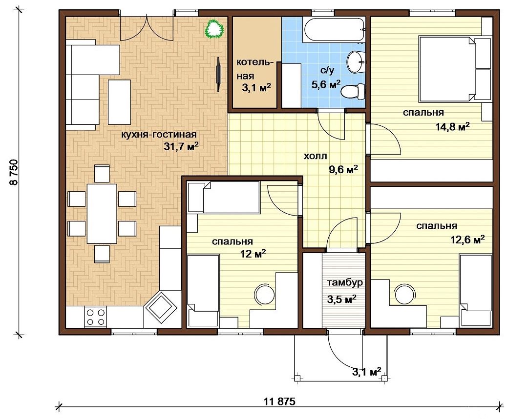 Проект одноэтажного дома Дориан с 3-мя спальными