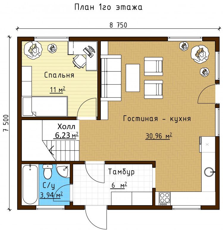 Проект дома Платини: 131 м2, 4 спальни, 1,5 этажа