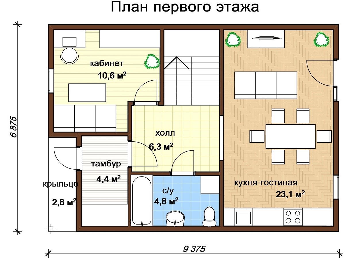 Проект дома Свити: 132 м2, 3 спальни, 1,5 этажа