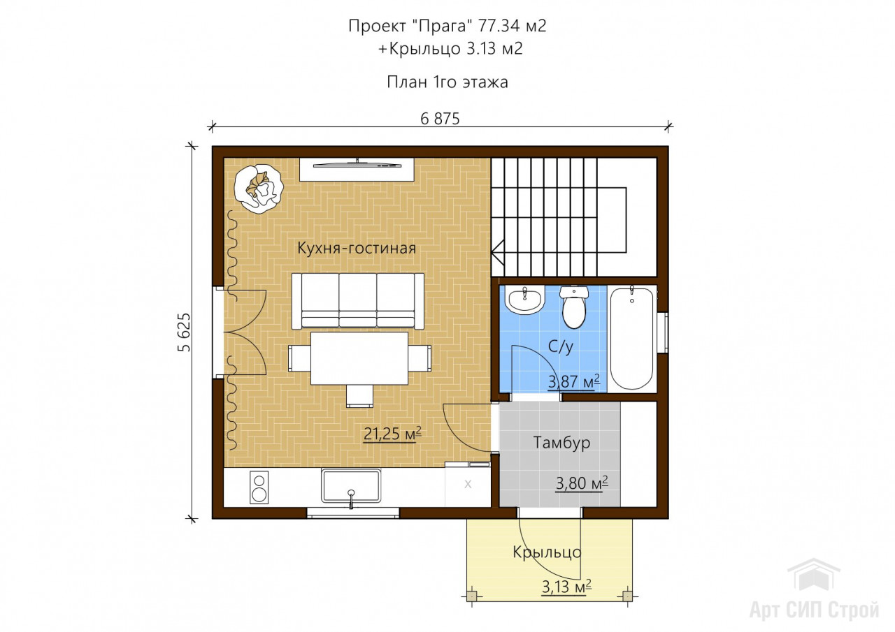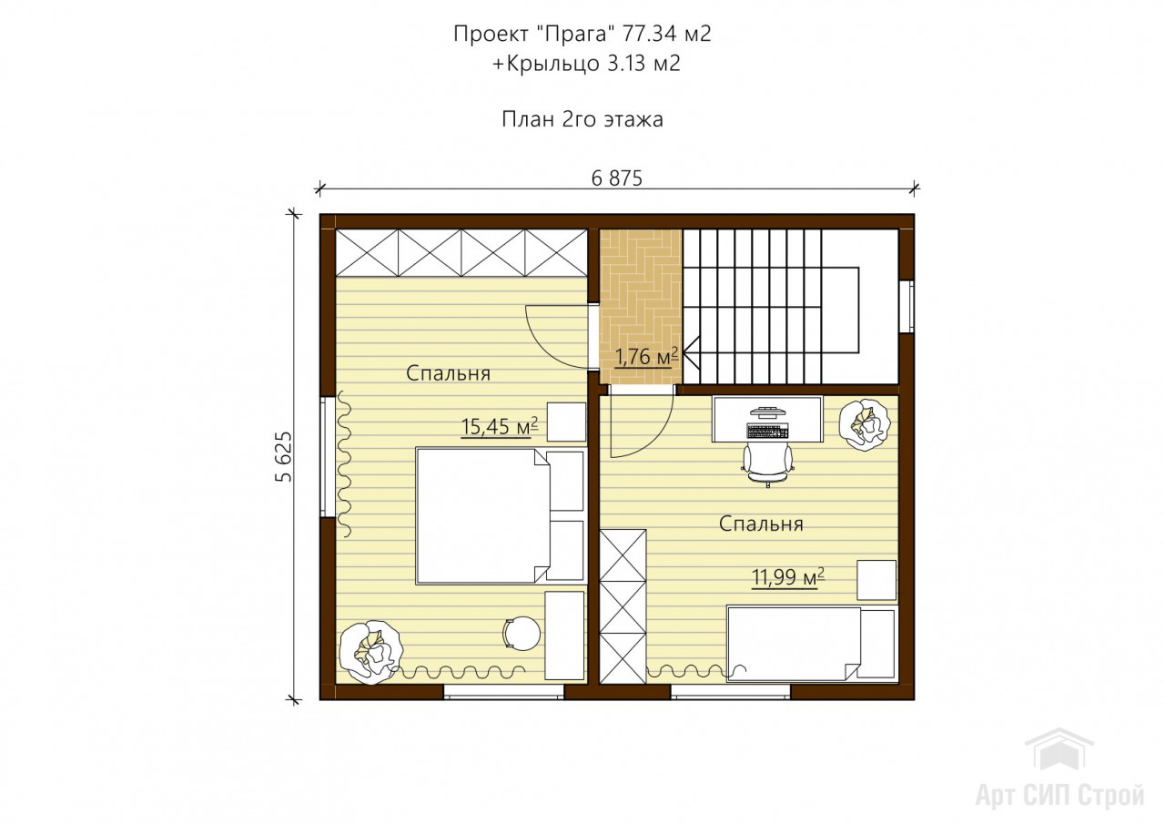 Проект дома Прага: 80 м2, 2 спальни, 2 этажа